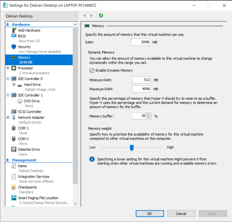 Hyper-V provides a default switch configured to NAT access through the host computer’s networking. It works out of the box, but we can create a new external switch to create a bridge network for our VMs.