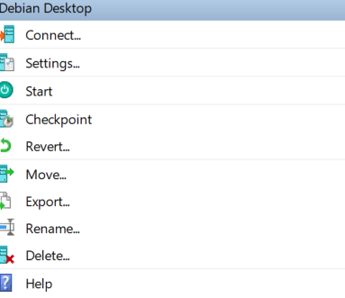 We can create checkpoints in the right menu pane. Then in the VM’s Checkpoints manager in the center pane we can rename, edit or delete our checkpoints.