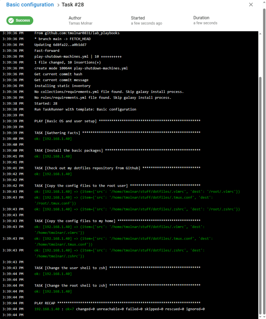We will see the output of the playbook on our screen: