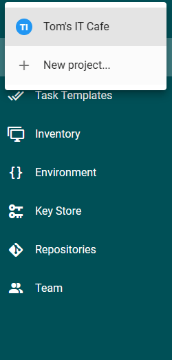 Later we can add new projects to Semaphore using the top left side of the screen. We have to click on the current project name that will open the drop down menu. The New project... menu will add new projects to Semaphore.